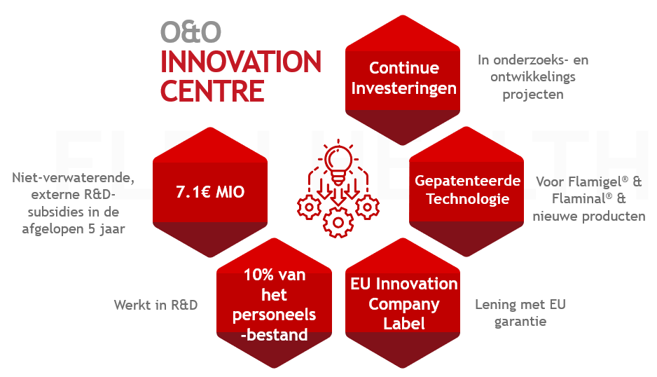 Met meer dan €7,1 miljoen aan externe O&O-subsidies in de afgelopen vijf jaar en 10% van ons personeelsbestand gericht op O&O, lopen we voorop bij de ontwikkeling van gepatenteerde technologieën, waaronder innovaties als Flamigel® and Flaminal®.